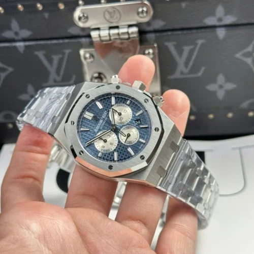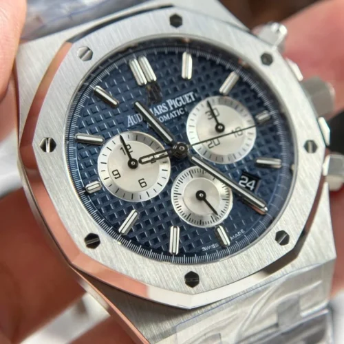 Authenticity: The Royal Oak 26331 Chronograph Blue Dial 41mm Copy Watch is a superb tribute to the iconic Audemars Piguet Royal Oak, featuring the signature deep blue “Grande Tapisserie” dial and finely executed stainless steel construction. This best copy combines premium aesthetics, versatile chronograph functionality, and the timeless appeal of the Royal Oak for any collection. Warranty: All of our best copy watches, including the Royal Oak 26331 Chronograph Blue Dial, are covered by a comprehensive 2-year warranty for lasting peace of mind and long-term satisfaction.