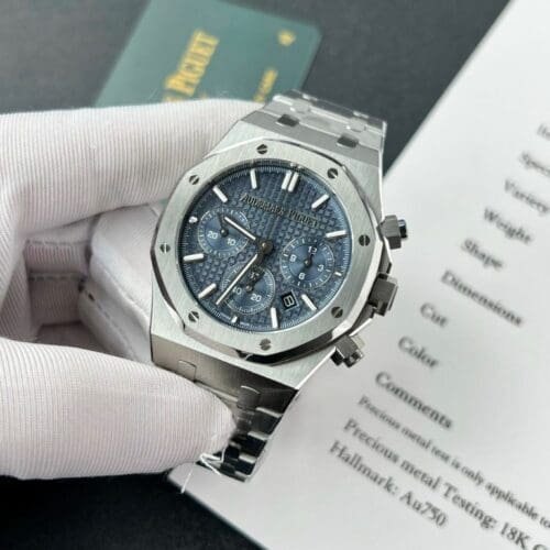 Elegant Functionality: The Audemars Piguet Royal Oak 26574ST 41mm Replica with a Blue Dial merges timeless design with complex functionality, offering features such as a perpetual calendar and a stunning “Grande Tapisserie” pattern. It is perfect for those who admire sophisticated craftsmanship in watchmaking. Warranty: This high-quality replica includes a limited warranty, ensuring protection against manufacturing defects. Enjoy the prestigious look and refined engineering of this exquisite timepiece.