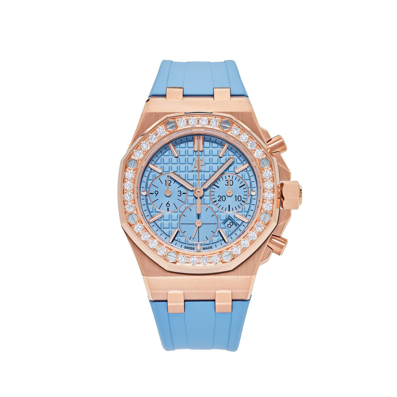Audemars Piguet Royal Oak Offshore Chronograph Rose Gold Blue Dial Diamond Bezel –