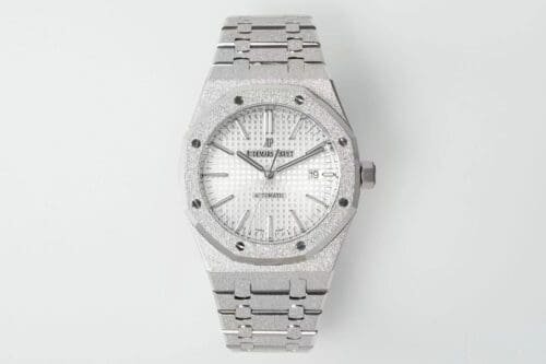 Design Excellence: Inspired by traditional Swiss craftsmanship, the Royal Oak 15410 Frosted, with its distinct white textured dial is a benchmark in super clone wristwatch engineering. It comes with a frosted SS case and bracelet for a stunning appearance. This is a great timepiece for watch enthusiasts seeking a blend of classic and modern design that stands out. Warranty: All our high-quality replica watches come with a comprehensive 2-year warranty. This ensures your timepiece is protected against defects or malfunctions, providing peace of mind and confidence in your purchase.