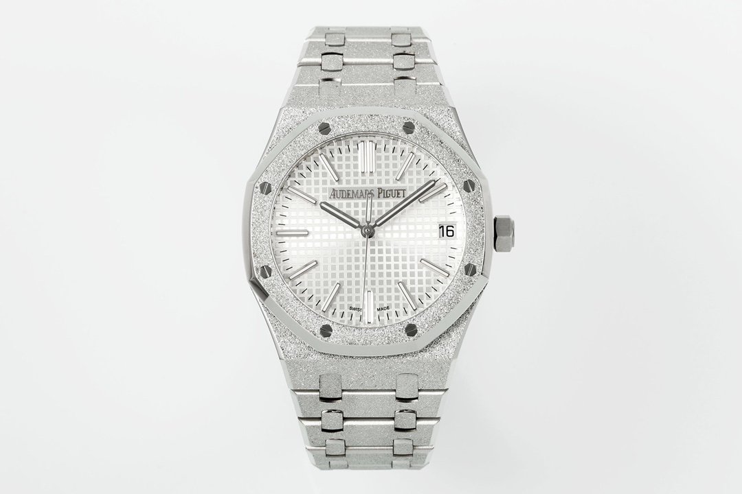 Royal Oak 15510 41mm Frosted SS/SS White Textured Dial APSF A4302 Super Clone –