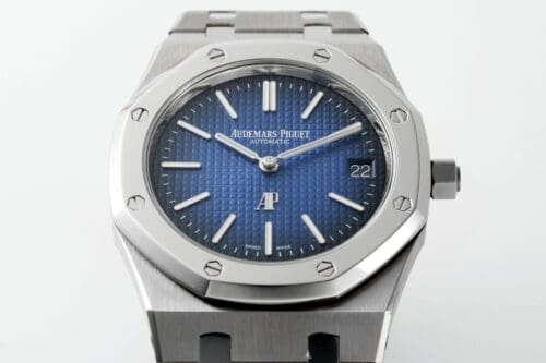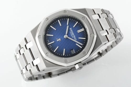Iconic Styling: Experience the perfect blend of functionality and luxury with this Royal Oak timepiece, featuring an alluring gradient blue textured dial and a premium SS bracelet. Its unmistakable octagonal bezel and meticulously crafted case make it an instant classic. Warranty: All our high-quality replica watches come with a comprehensive 2-year warranty. This protects your timepiece against defects or malfunctions, providing peace of mind and confidence in your purchase.