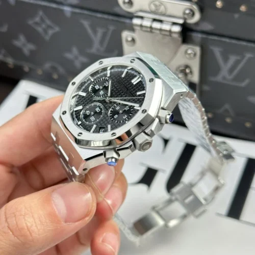 Authenticity: The Royal Oak Chrono 26240 SS APSF 1:1 Best Edition Super Clone V2 is a meticulously crafted replica, mirroring the design and sophistication of the latest generation of Audemars Piguet Royal Oak Chronographs. Its striking black “Grande Tapisserie” dial, functional pushers, and high-grade stainless steel bracelet embody the essence of timeless luxury and technical mastery. Warranty: All our top-tier super clone watches, including the Royal Oak Chrono 26240 APSF, are covered by a comprehensive 2-year warranty. Enjoy confidence and peace of mind with your purchase, knowing your watch is protected against defects and malfunctions.
