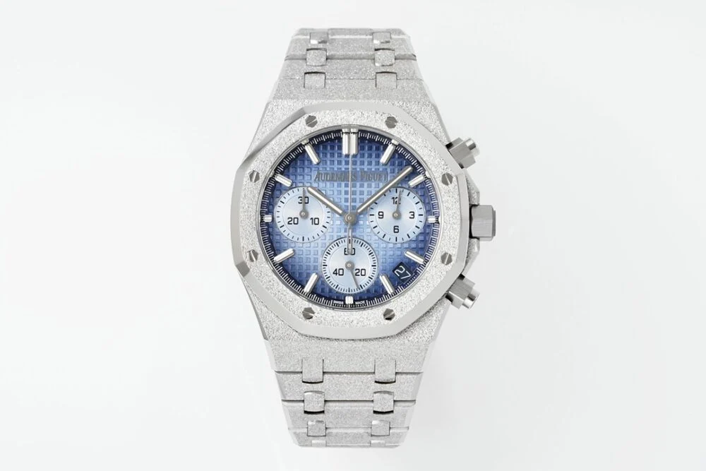 Authenticity: The Royal Oak Chronograph 26240BC 41mm APS Super Clone pairs a robust stainless steel case and integrated bracelet with a vibrant blue “Grande Tapisserie” dial. Driven by the highly accurate SH4401 automatic chronograph movement, this timepiece exudes both technical excellence and timeless Royal Oak appeal, making it a perfect choice for collectors and enthusiasts alike. Warranty: As with all our Audemars Piguet super clone watches, the Royal Oak Chronograph 26240BC APS comes with a comprehensive 2-year warranty for worry-free ownership and complete after-sales support.
