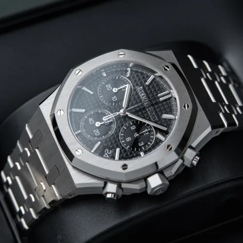 Authenticity: The Royal Oak Chrono 26240ST 41mm Super Clone with a Black Dial is a meticulously crafted replica, embodying the sport elegance of the original Audemars Piguet Royal Oak Chronograph. This timepiece combines precision with robust aesthetics, making it a desirable watch for both collectors and enthusiasts. Warranty: All our high-quality replica watches, including the Royal Oak Chrono 26240ST, come with a comprehensive 2-year warranty. This ensures your timepiece is protected against any defects or malfunctions, providing peace of mind and confidence in your purchase.