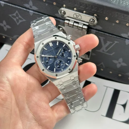Authenticity: The Royal Oak Chrono 26240ST 41mm Super Clone with a Blue Dial is a masterfully crafted replica, reflecting the sophisticated elegance of the original Audemars Piguet Royal Oak Chronograph. The iconic design and precision make it a coveted piece for both collectors and enthusiasts. Warranty: All our high-quality replica watches, including the Royal Oak Chrono 26240ST, come with a comprehensive 2-year warranty. This ensures your timepiece is protected against any defects or malfunctions, providing peace of mind and confidence in your purchase.