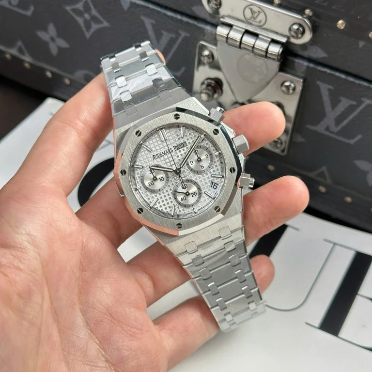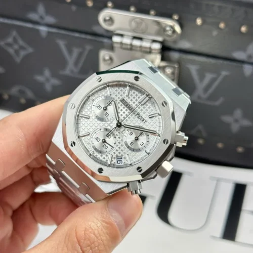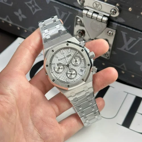 Authenticity: The Royal Oak Chrono 26240ST 41mm Super Clone with a Silver Dial is a precisely crafted replica that echoes the refined elegance of the original Audemars Piguet Royal Oak Chronograph. The combination of its iconic design and exceptional craftsmanship makes it a sought-after timepiece for both collectors and watch enthusiasts. Warranty: All our high-quality replica watches, including the Royal Oak Chrono 26240ST, come with a comprehensive 2-year warranty. This ensures your timepiece is protected against any defects or malfunctions, providing peace of mind and confidence in your purchase.
