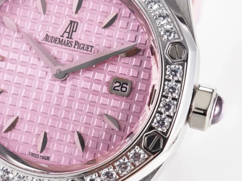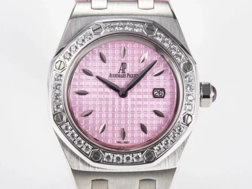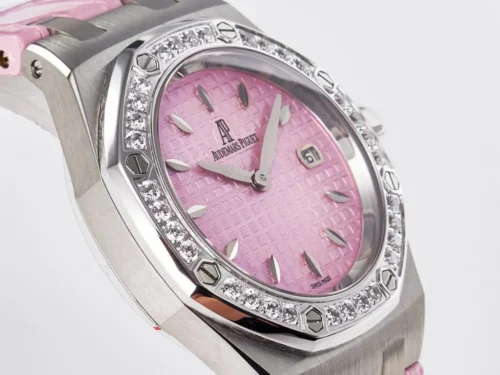 Authenticity: The Royal Oak Offshore Ladies 33mm SS DRF Best Edition with Pink Dial and Diamonds Bezel is a beautifully crafted luxury replica. The eye-catching pink dial and matching leather strap bring a vibrant, youthful charm, while brilliant hand-set diamonds lend plenty of sophistication. An ideal choice for those who want standout elegance and top performance in a timepiece. Warranty: All our premium replica watches, including the Royal Oak Offshore Ladies 33mm SS, are covered by a comprehensive 2-year warranty against manufacturing defects, ensuring confidence and satisfaction with every purchase.