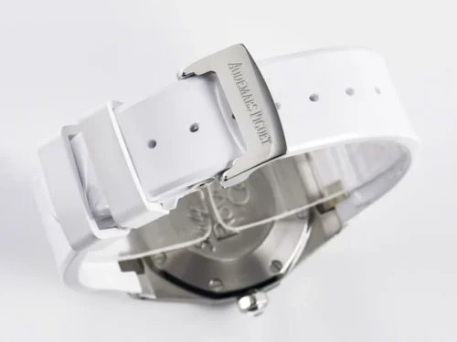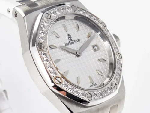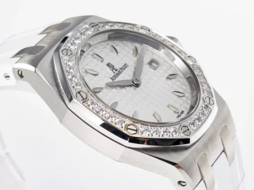 Authenticity: The Royal Oak Offshore Ladies 33mm SS DRF Best Edition with White Dial and Diamonds Bezel is a masterfully crafted luxury replica. The crisp white dial and matching white rubber strap offer a fresh, contemporary look, while the dazzling hand-set diamonds add unmistakable elegance. Ideal for women seeking modern style, sophistication, and outstanding reliability in a premium timepiece. Warranty: All our high-end replica watches, including the Royal Oak Offshore Ladies 33mm SS, are protected by a comprehensive 2-year warranty against manufacturing defects, ensuring your peace of mind and satisfaction with every purchase.