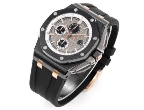Authenticity: The Royal Oak Offshore 44mm RSF 1:1 Best Edition is a top-of-the-line replica that captures the innovative design and robust performance of Audemars Piguet. Featuring a high-quality real ceramic case and rose gold-tone markers on a stylish gray dial, it is complemented by a durable rubber strap, making it both elegant and sporty. Warranty: All our premium replica watches, including the Royal Oak Offshore 44mm, come with a comprehensive 2-year warranty. This ensures your timepiece is protected against any defects or malfunctions, delivering peace of mind with your purchase.